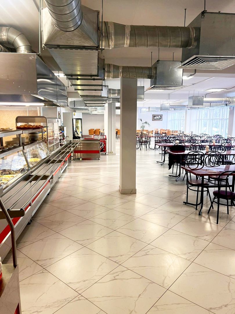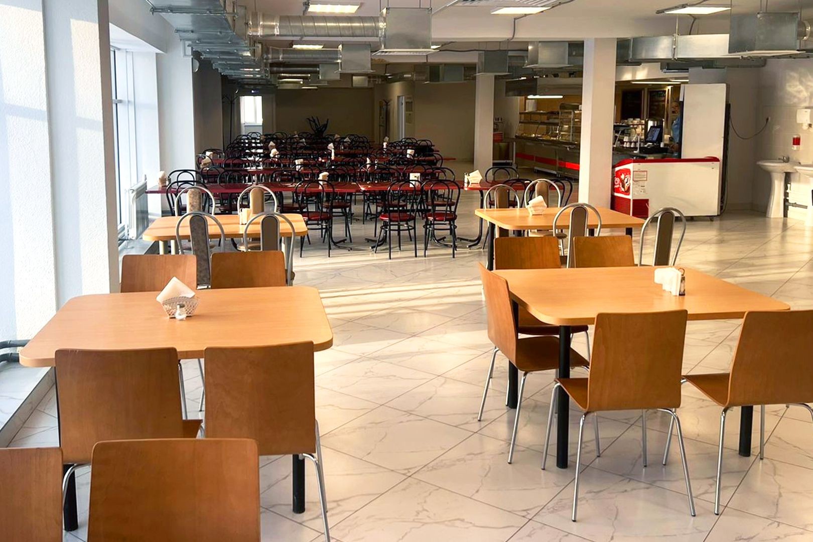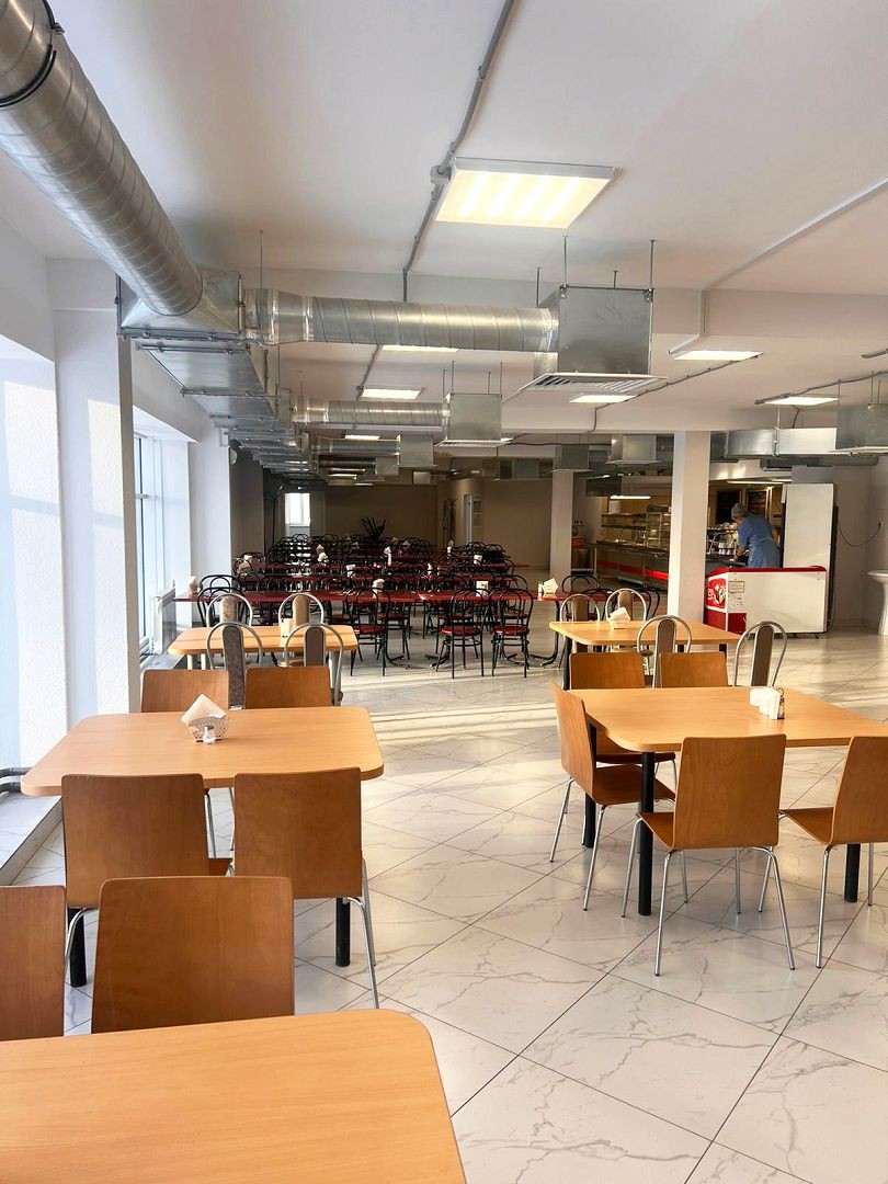 В столовой просторный и светлый зал, удобная мебель, вежливый персонал. В меню представлены угощения традиционной русской кухни, с редкими вкраплениями Европы и Азии.